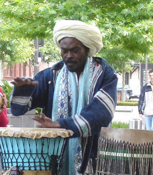 Sam Oshodi, pictured in the introduction, welcomed onlookers and introduced the day with his marvellous African drums.