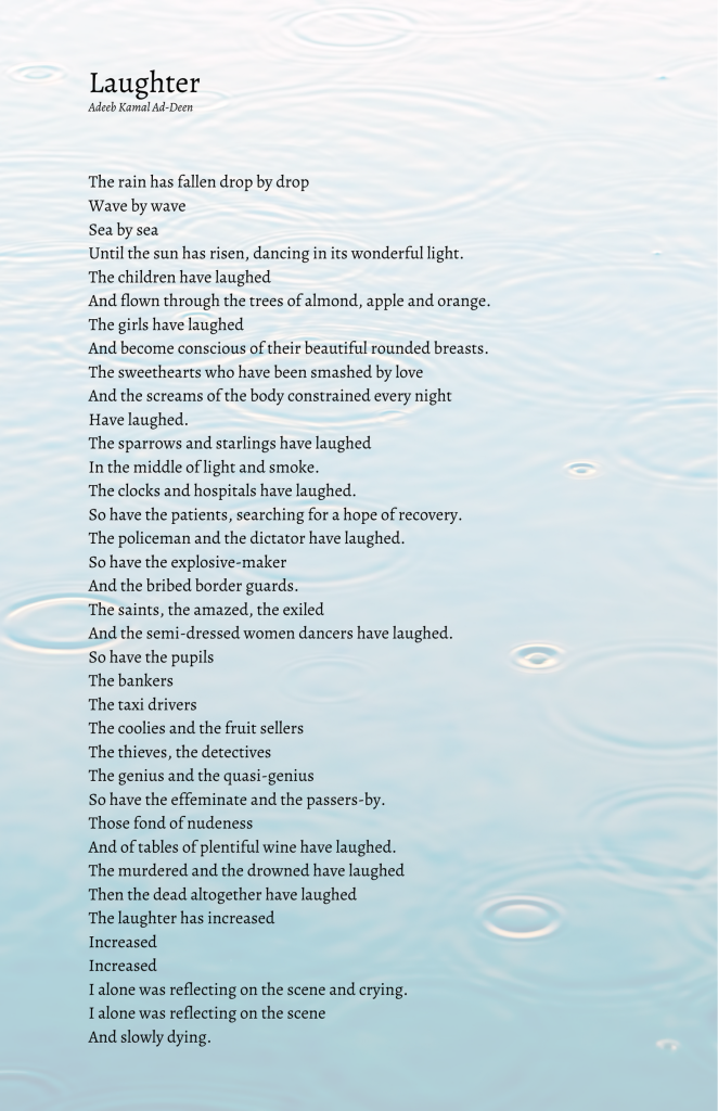 ‘Laughing’ and photo with permission, Adeeb Kamal Ad-Deen