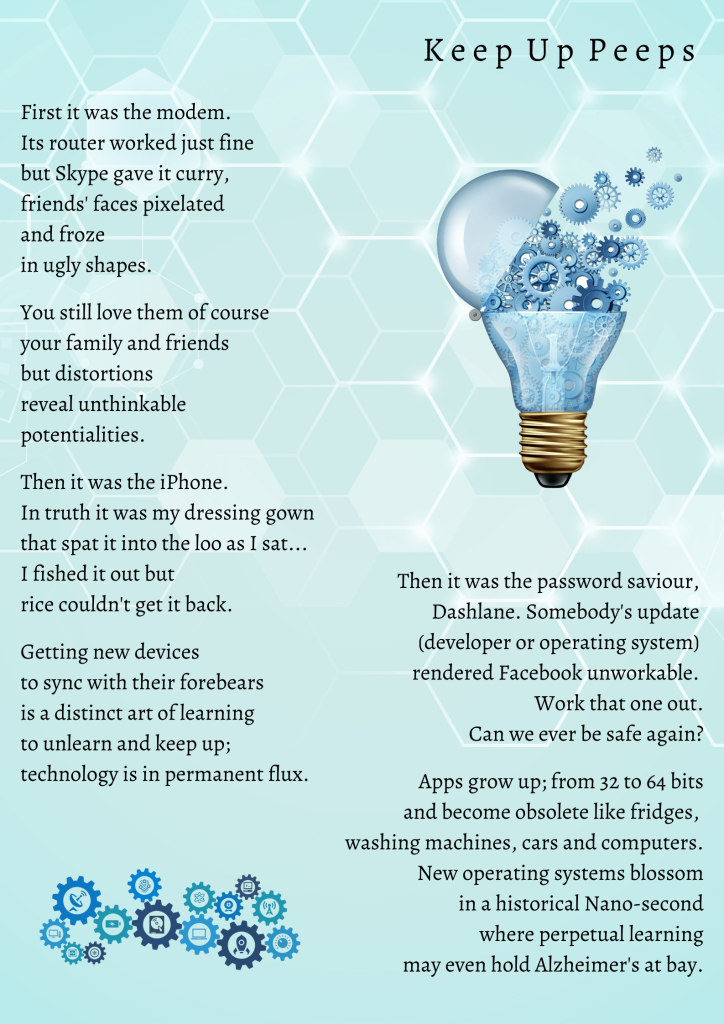 I apologise to all of my Wattletales guests. The website’s new security measures eliminated all Facebook like counts since the inception of blog posts three years ago. The only available counts are on pages (which are different) and new posts from November 2021. The insanity of this made me decide to end with a poem about the frustrations of technology. An oldie, but I hope it fits the bill.