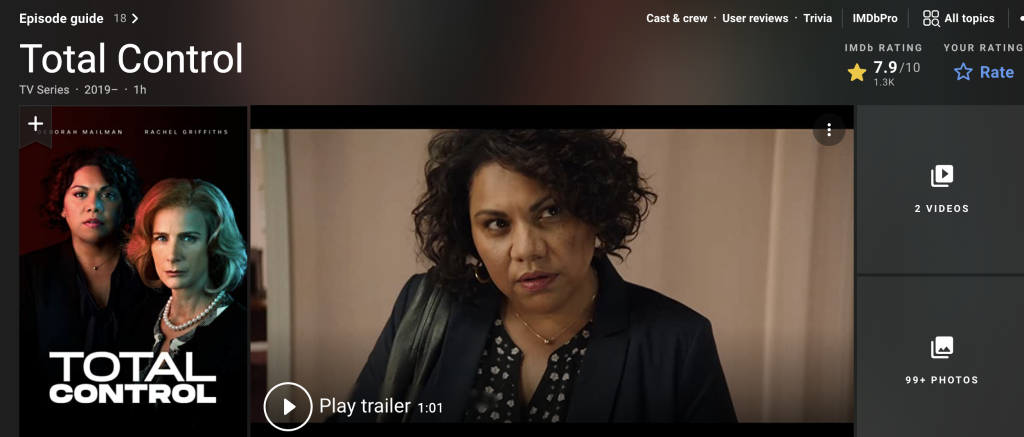 Our talent for TV drama is excellent. One of the best political shows, with tension as high as a de Heer film or Nordic Noir, was Total Control in 2019. Deborah Mailman and Rachel Griffiths are astounding in their roles, grappling with racism, sexism and power in the Australian parliament. It is so clever, and Mailman gave one of the finest Australian performances I have ever seen on screen. She is so good.