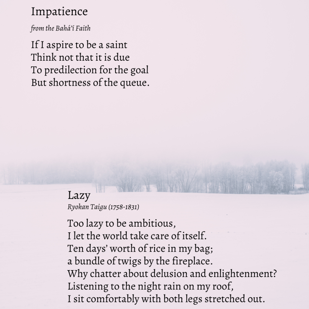 Although this last poem was not consciously written with the Dalai Lama’s philosophy in mind, it echoes it.