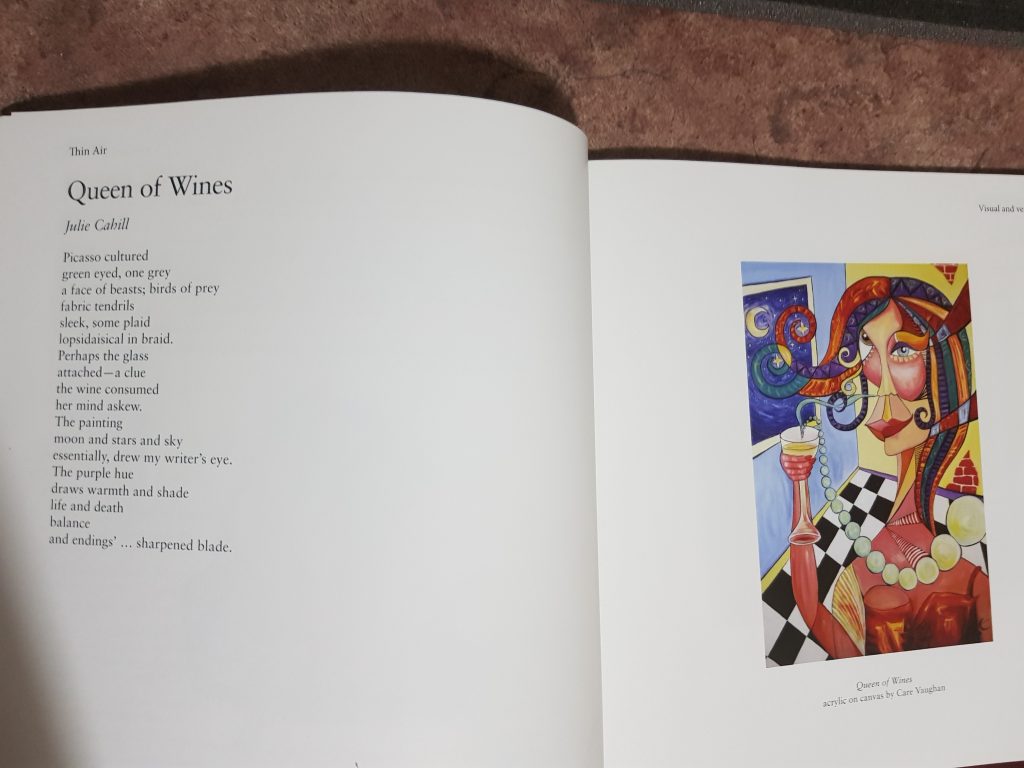 David encouraged me to enrol in art classes when he knew that’s what I wanted above all else. He re-introduced me to writing which I’d given up as a school kid. He applauds my few little successes, from having poetry or prose published, to being invited to be a guest reader at forums like Coriole Winery’s annual Poetry in the Vines and Poets’ Corner as well as my spot here on Wattletales. A fulfilling challenge was being co-editor of the 2018 Friendly Street Poets Anthology, alchemy. David’s confidence in me has been a game-changer.