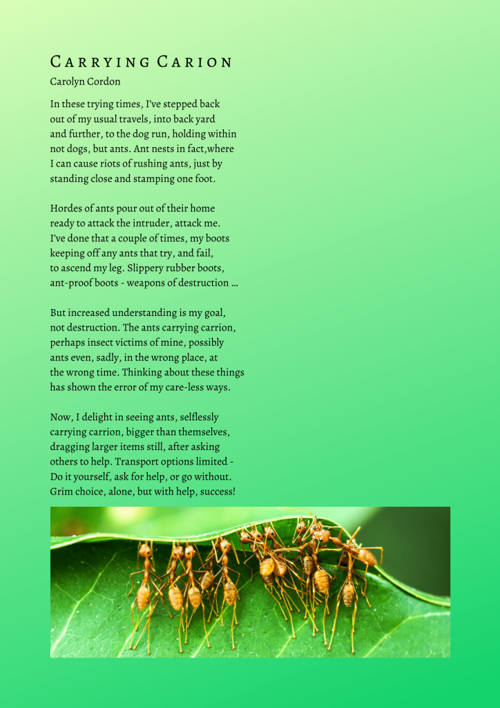 A new poem for the times by Carolyn Cordon.