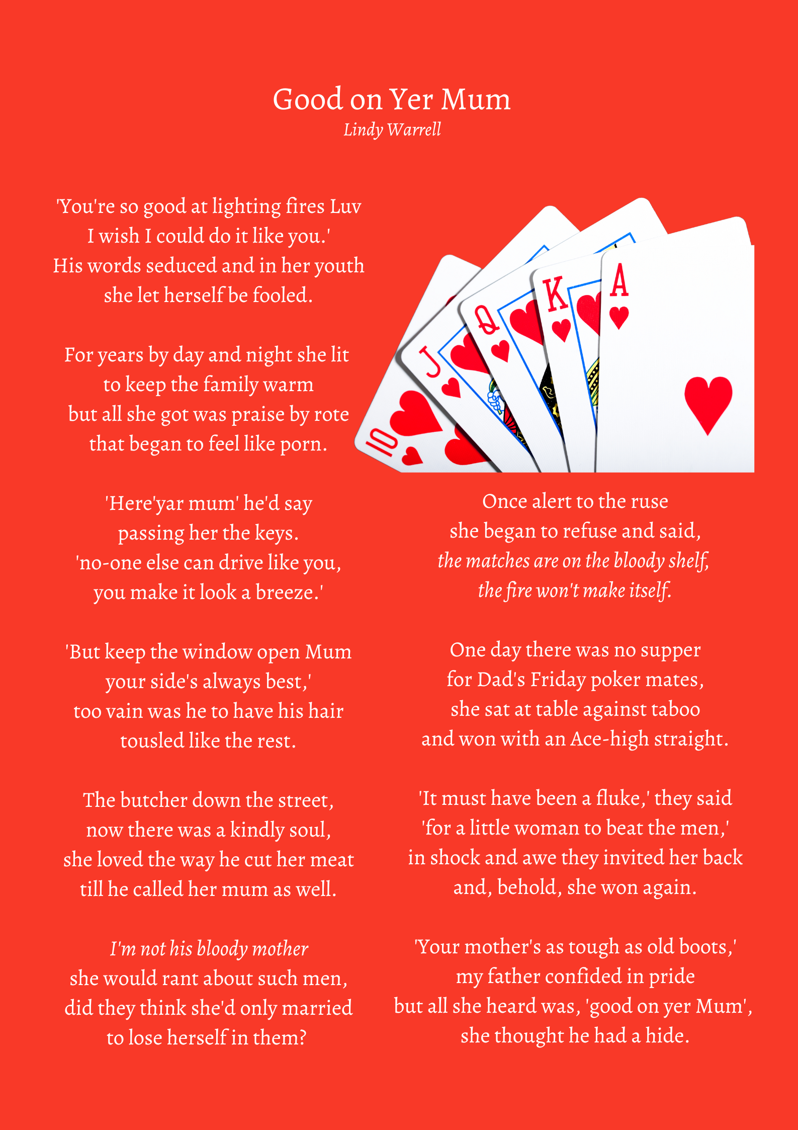 It’s tempting to believe my pilgrimage with poetry began at Flinders University, where I completed a Creative Writing Graduate Diploma. Academic learning validates. It teaches the craft, but the richest source for poetry for most poets is ancestral.