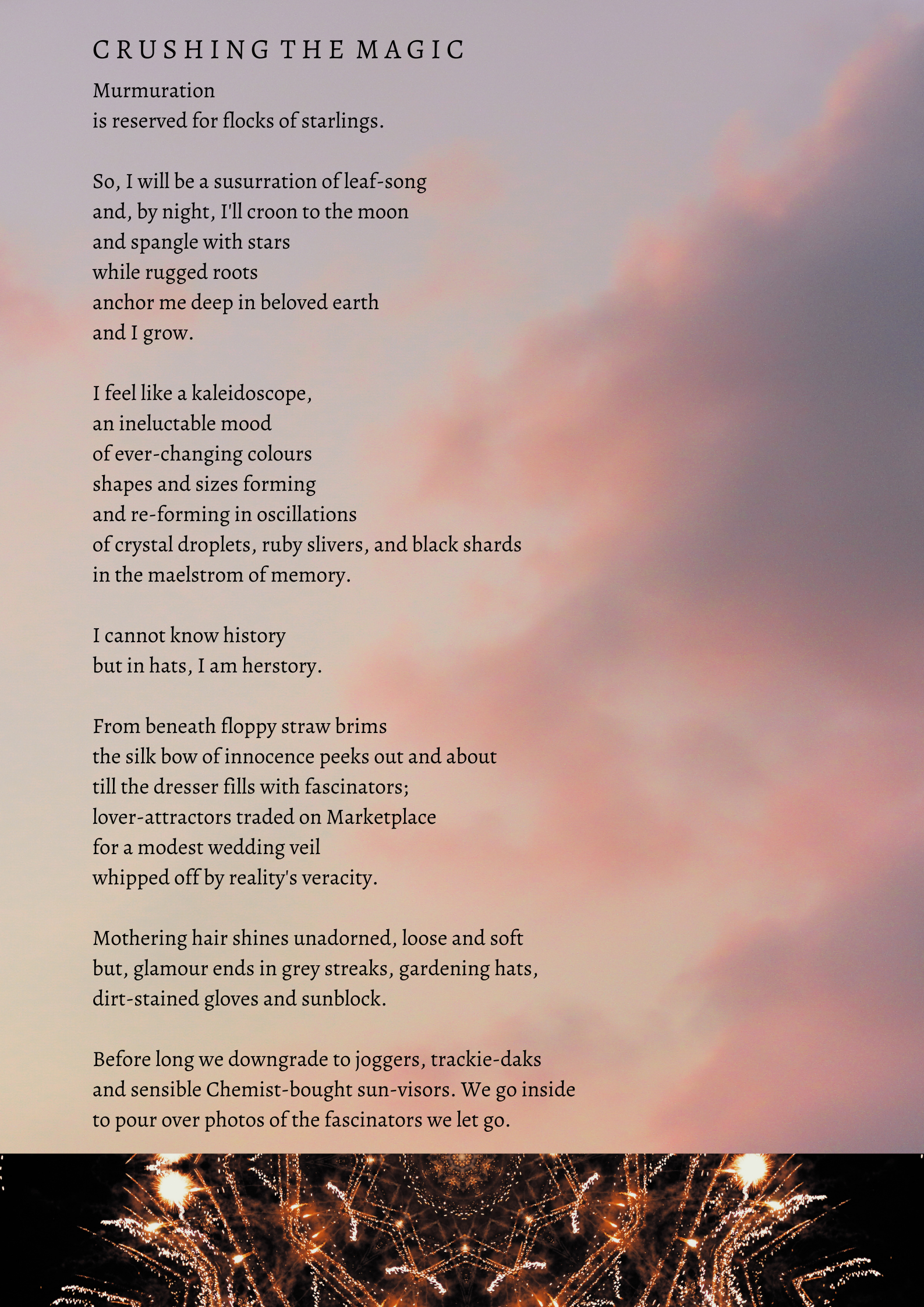 It is difficult to believe you have only been writing poetry for a short while. Your talent is diverse, Lindy, in the wondering and sharing of magic.