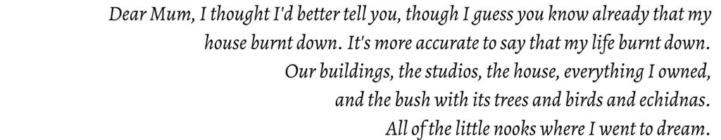 That a lot of the bigger gum trees probably survived. That the beautiful bush will surely recover and we will watch it.