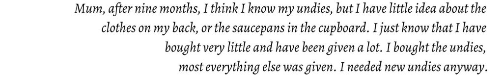 Hi Veronica. I’m glad you like it. Don’t worry, I have my fair share of ‘poor me’. Actually as a little child, the last of five, when I wasn’t quick enough with whatever was on offer, and I missed out, I’d say, ‘Poor me. Gocka none. ‘ (Got none.) And this year sometimes, I’d say just that. But it just made me laugh. Never more appropriate, let’s face it. But still there was a bit of true self pity thrown in. Of course.