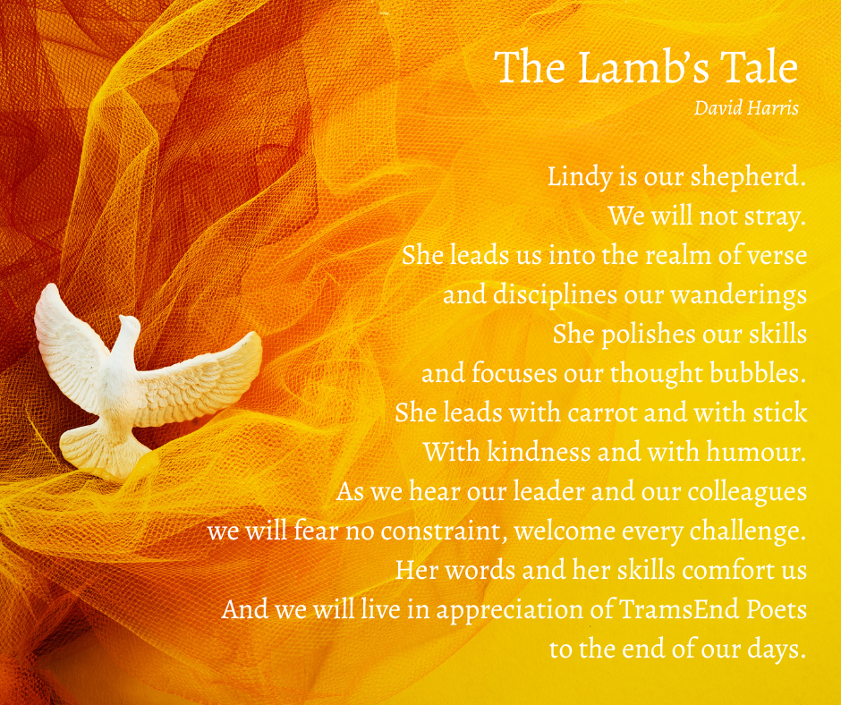 Today’s post is a tribute to the members of TramsEnd Poets, my compatriots in poesy over the best part of ten years, as I pass on the baton. TramsEnd Poets has always been a powerful critique group, and I want to thank all members, past and present, for their collegiality. Click here to find a list of stories by our members and guests over time.