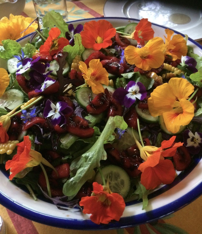 My untamed style of gardening has never led to the rows of abundant crops of my childhood. Leaf structure, foliage colour and diversity please my eye. We persist with herbs and salad greens to make meals tasty and alive. These days the wildlife seems to win the fruit harvest most often.